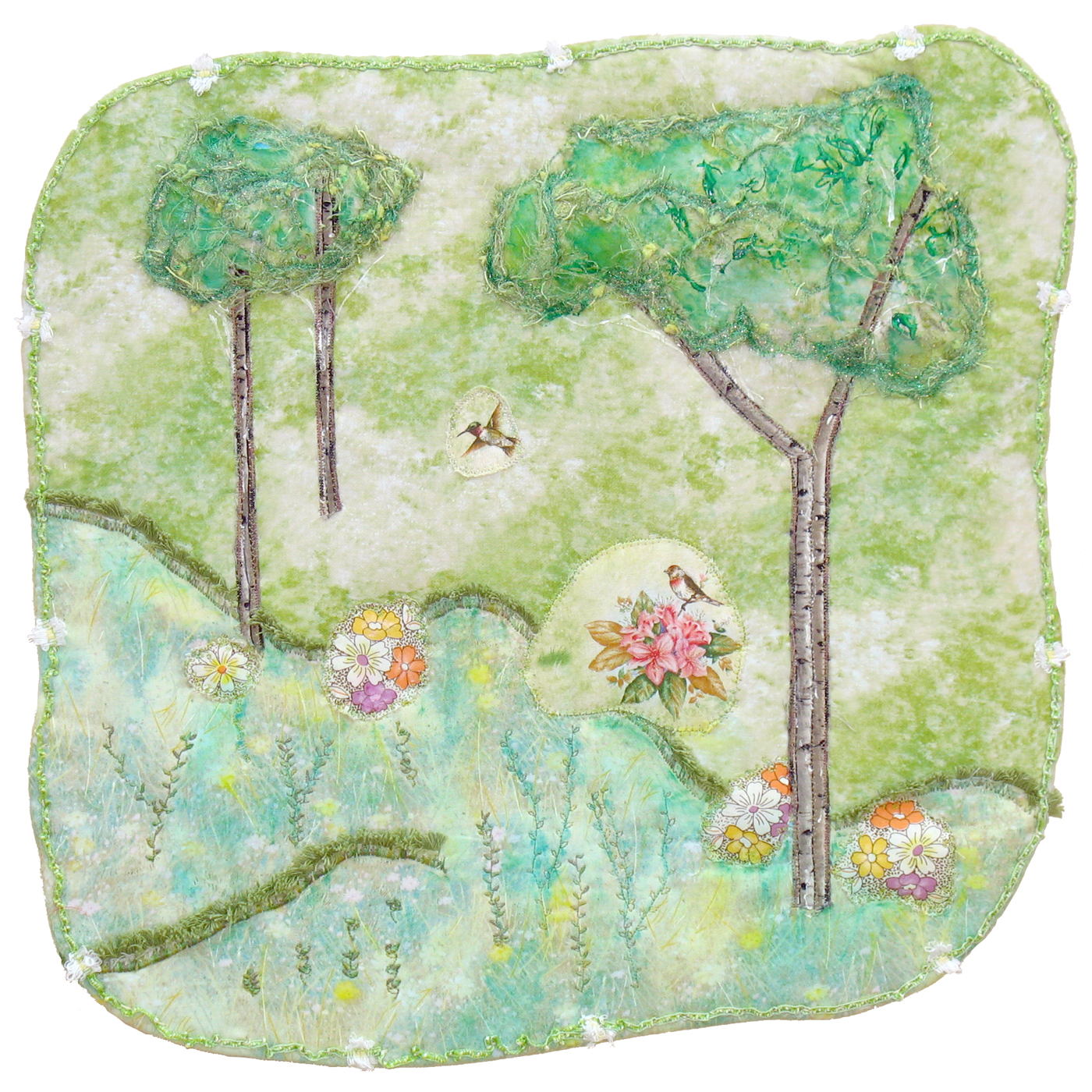 Early Spring may have started at that time of year, but stayed around in an unfinished state for quite some months! It was not until November that I decided what it needed. It was altogether too pale, and the application of some diluted green ink helped bring the trees out from the background, and some yellow ink likewise to highlight the flowers in the meadow.