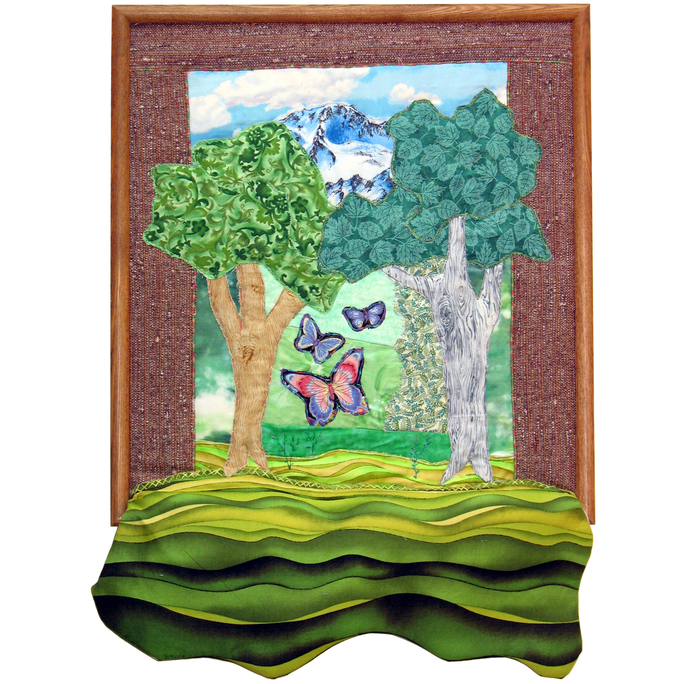 This piece started off with a Fast Friday Fabric Challenge to take a traditional quilt pattern and go wild with it — and it is so far off from the log cabin pattern that traditional quilters don’t recognize it!